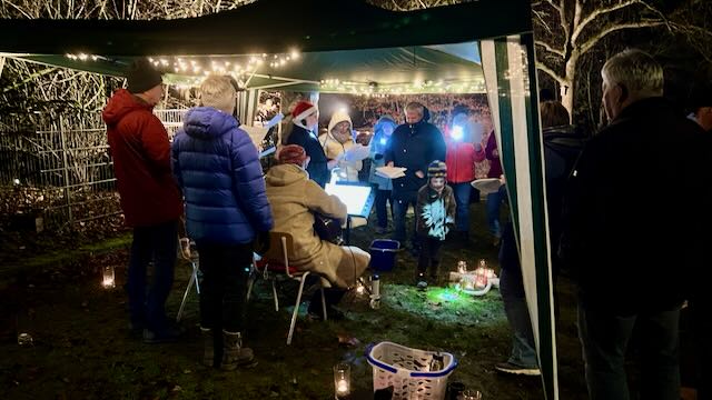 zum 1. Advent bei Glühwein und warmen Apfelsaft auf dem Parkplatz vor dem Kindergarten am